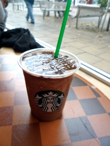 Chocolate Creme frappuccino. I sat reading my novel (The Mill on the Floss) for about an hour and a half enjoying this and people watching. I wish I could have gotten a coffee, though. Oh well, better something than nothing!