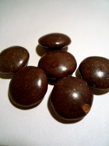 Minstrels. Basically really delicious, gigantic M&Ms. They’re also impossibly difficult to stop eating. My solution? Measure out a 1/4 cup, and savor it through the day. A serving of these is 42g, but I’m guessing based on the calorie count (compared to M&Ms), that’s about a 1/4 cup. They’re SO good!