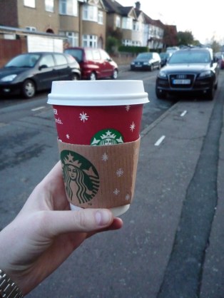 It was a little too sweet, but since I’ve become intolerant to coffee, it’s my only other hot drink choice. (By the way, I don’t like tea.) And, honestly, I mainly got it because I love Starbucks’ holiday cups!!! 🙂