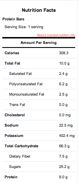 Nutrition (for 10 bars – it would obviously be different if you make these in a 9×13 pan):