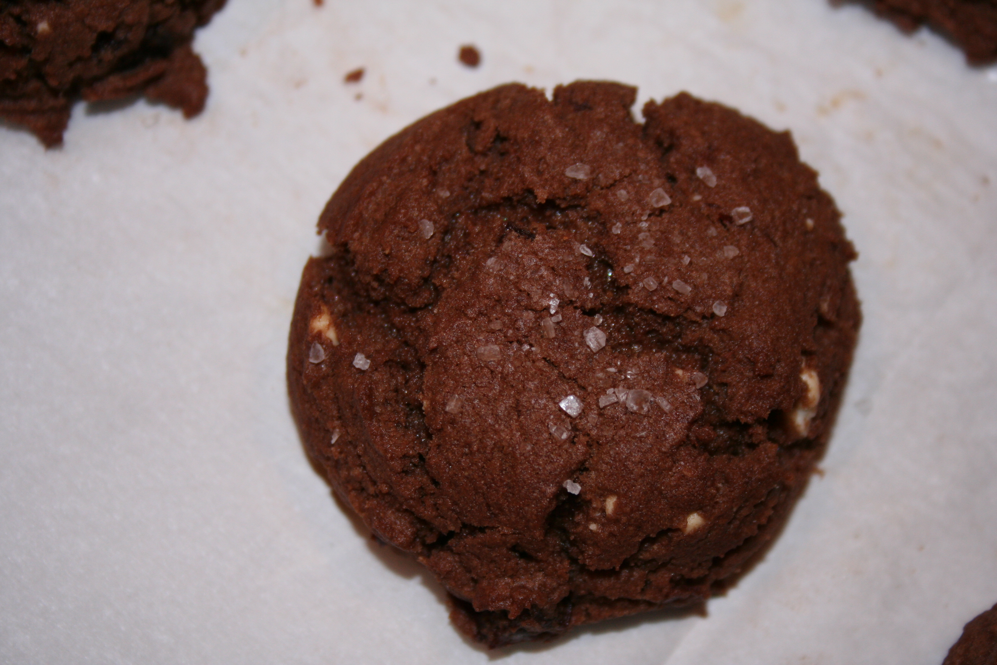 - Drop by rounded tablespoon onto baking sheet. Using the bottom of a glass or measuring cup, flatten the tops of the cookies slightly. Sprinkle a bit of the sea salt on top, if using.
