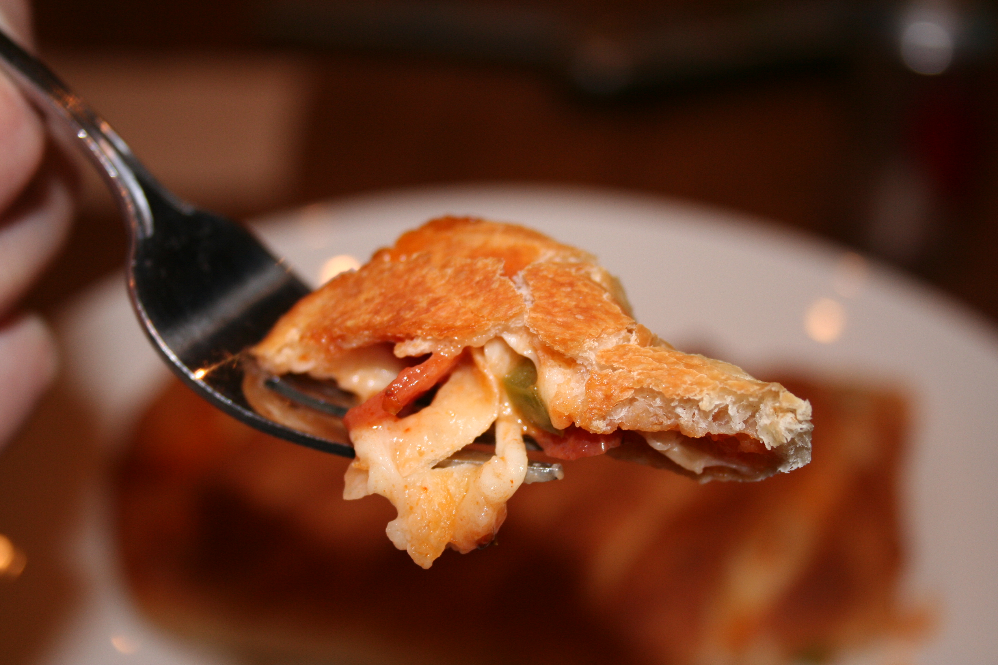 – We had four people with different likes/dislikes eating these calzones. You can customize these to feed however many people you want: my mom and I split one, and on my half I had pepperoni, green pepper, and cheese. She had those things and mushrooms. You could serve three or four people per calzone – just divide it up as you please!