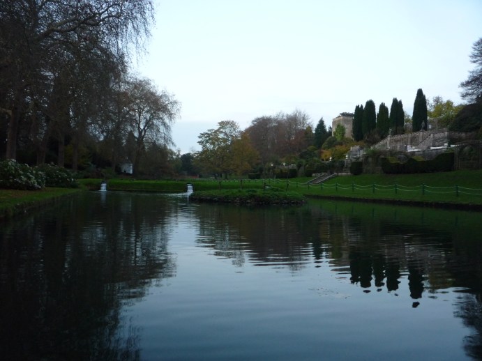 The place below was called Bute Park, Cardiff Castle (or Parc Bute, Castell Caerdydd). It was absolutely gorgeous, with the blue sky and autumn leaves…