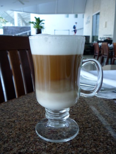 And headed down to breakfast. I’ll say it again: the food in Mexico was amazing! The breakfast was chock full of fresh fruits, cheeses, meats, juices, veggies – everything! To start off, I poured myself a glassful of two of the juices they had.