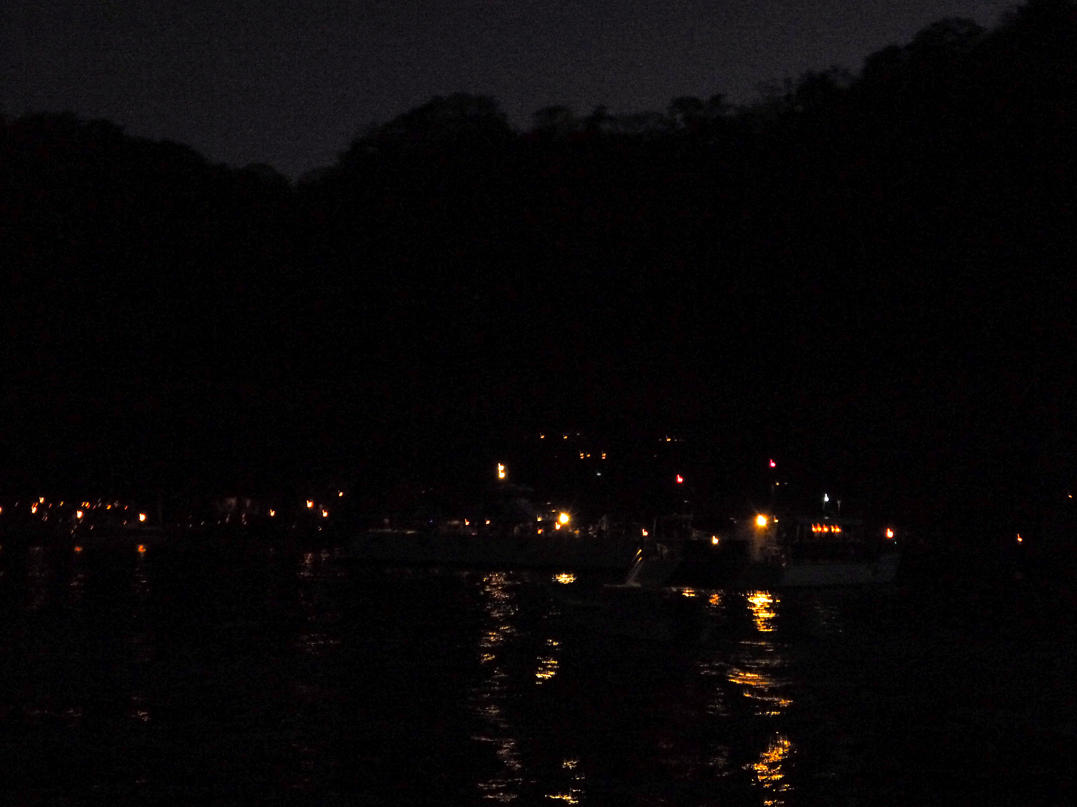 When we arrived on the island, it was dark, and all you could see were the small dots of light from the torches they had set up.