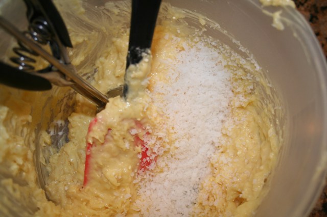 – Because the texture of shredded coconut can be sort of unpleasant at times, I decided to shred it even more in our Magic Bullet (you could do this in a food processor). It turned the coconut into a nice, snow-like consistency, so it melted into the batter and frosting, and I didn’t have any big shreds of coconut sticking out.