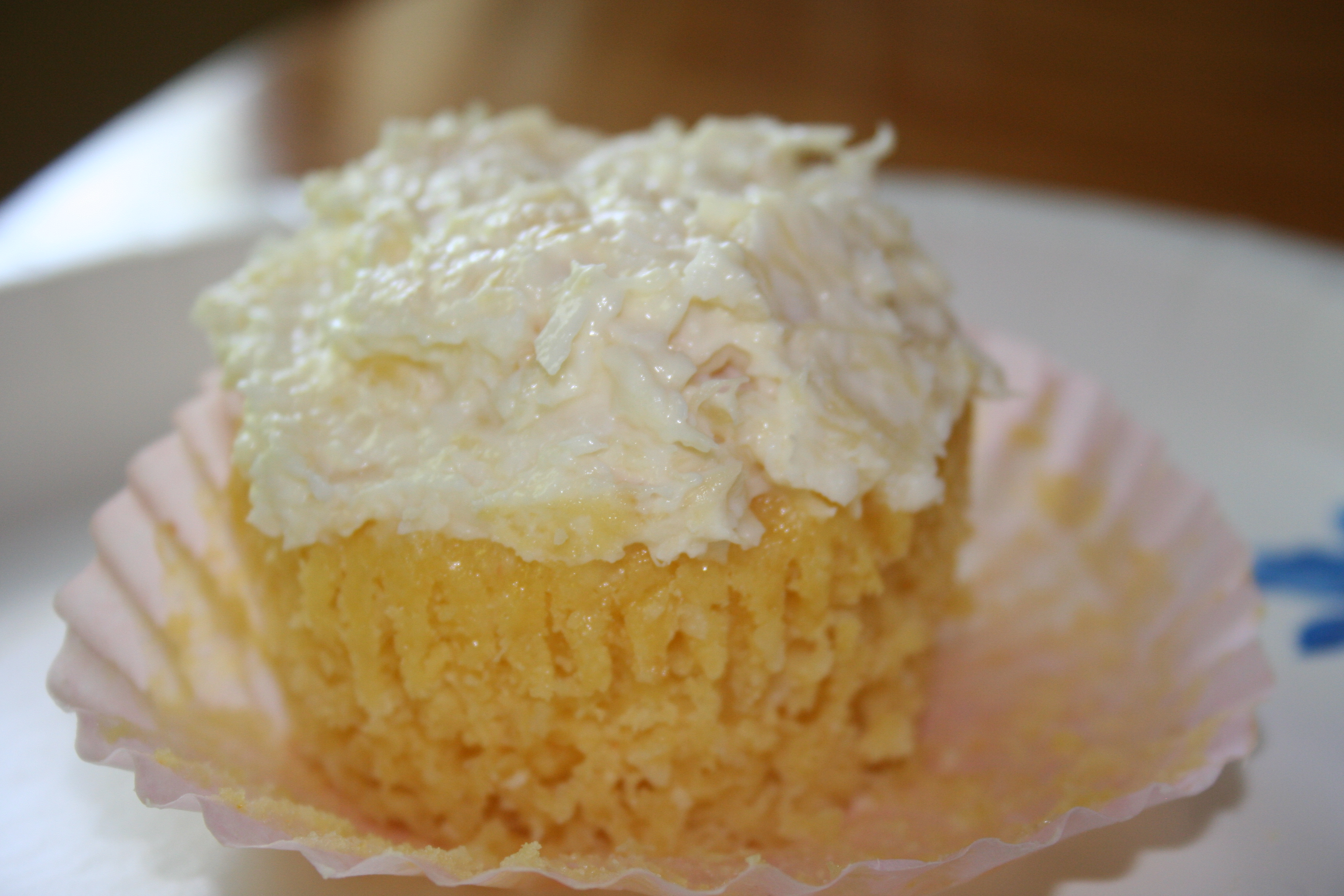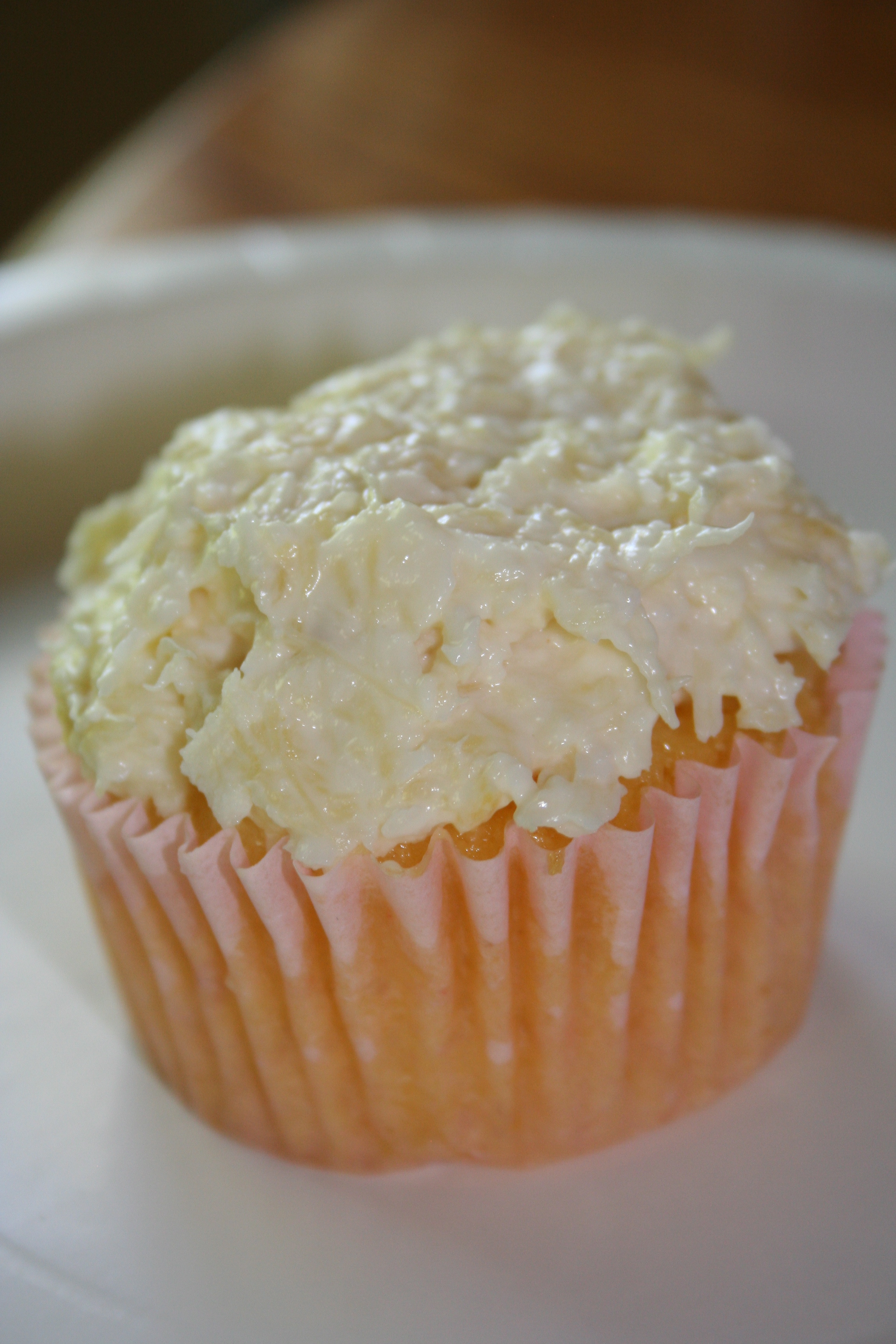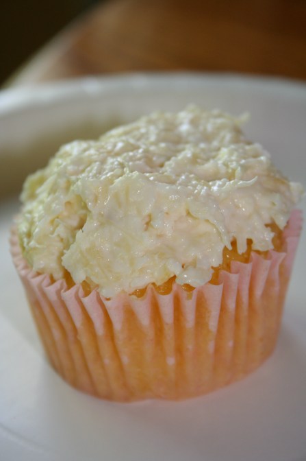 – Because my brother and dad do not like coconut, I made about 1/3 of the cupcakes just pinapple – no coconut in the frosting or the cake. They loved them.