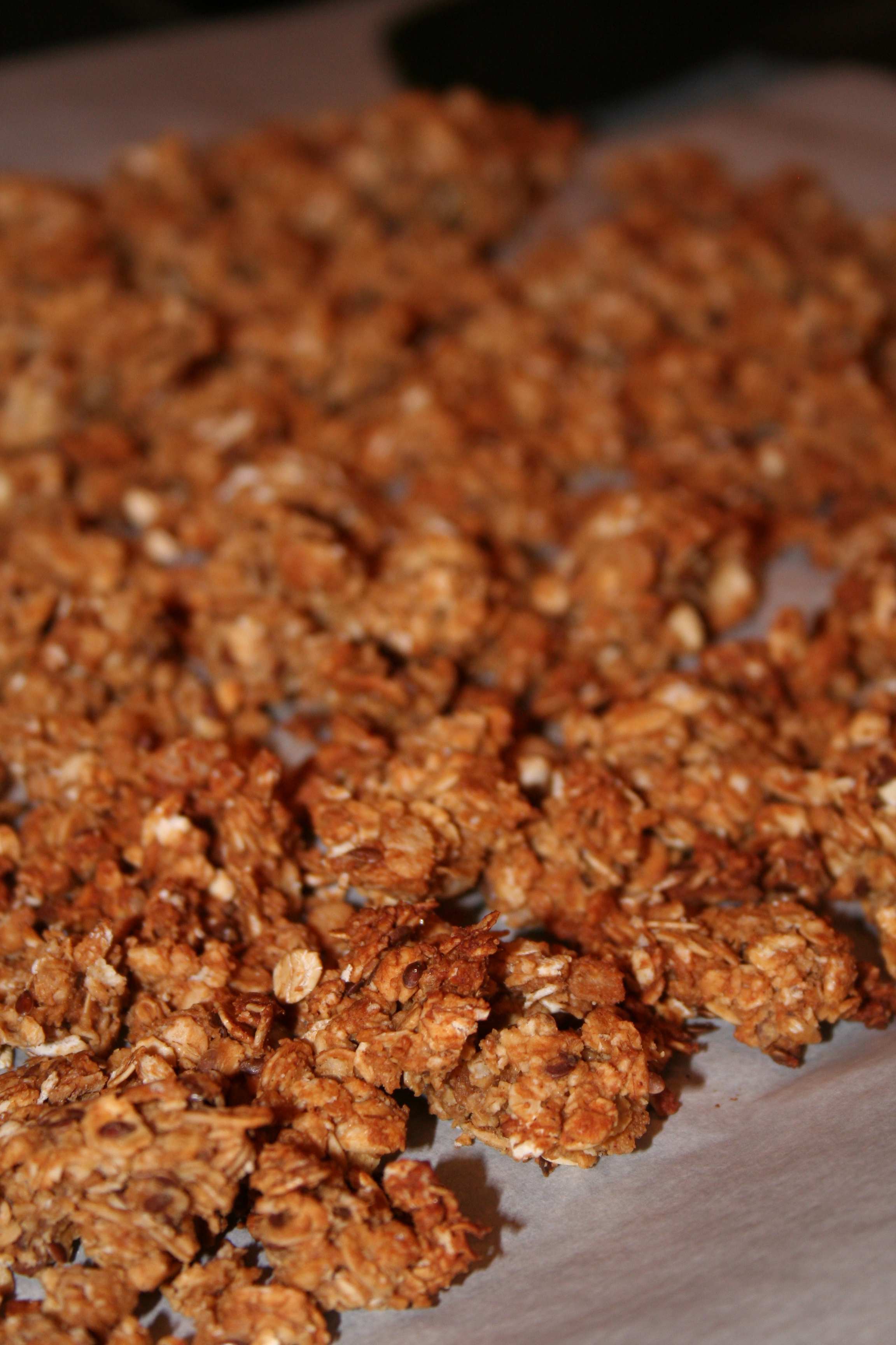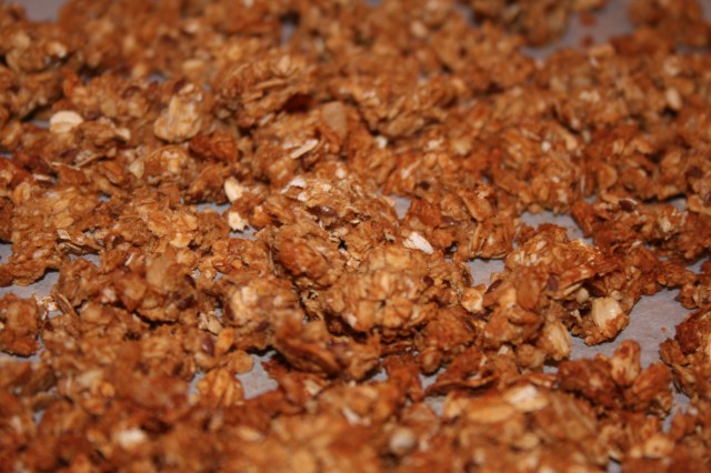 5. Scoop the mixture onto the baking sheet, and bake for about 20 minutes, stirring once at the halfway point. Allow to cool completely before storing.