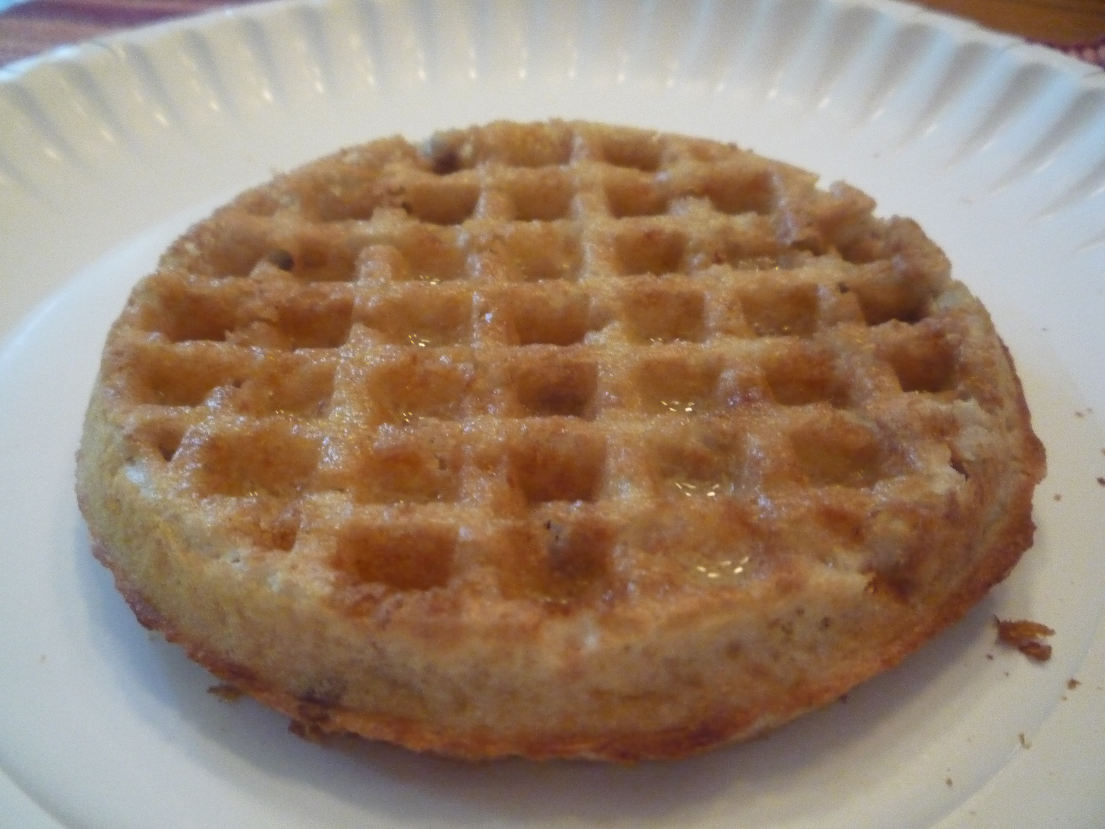 A strawberry/blueberry protein smoothie and a Van’s blueberry waffle.