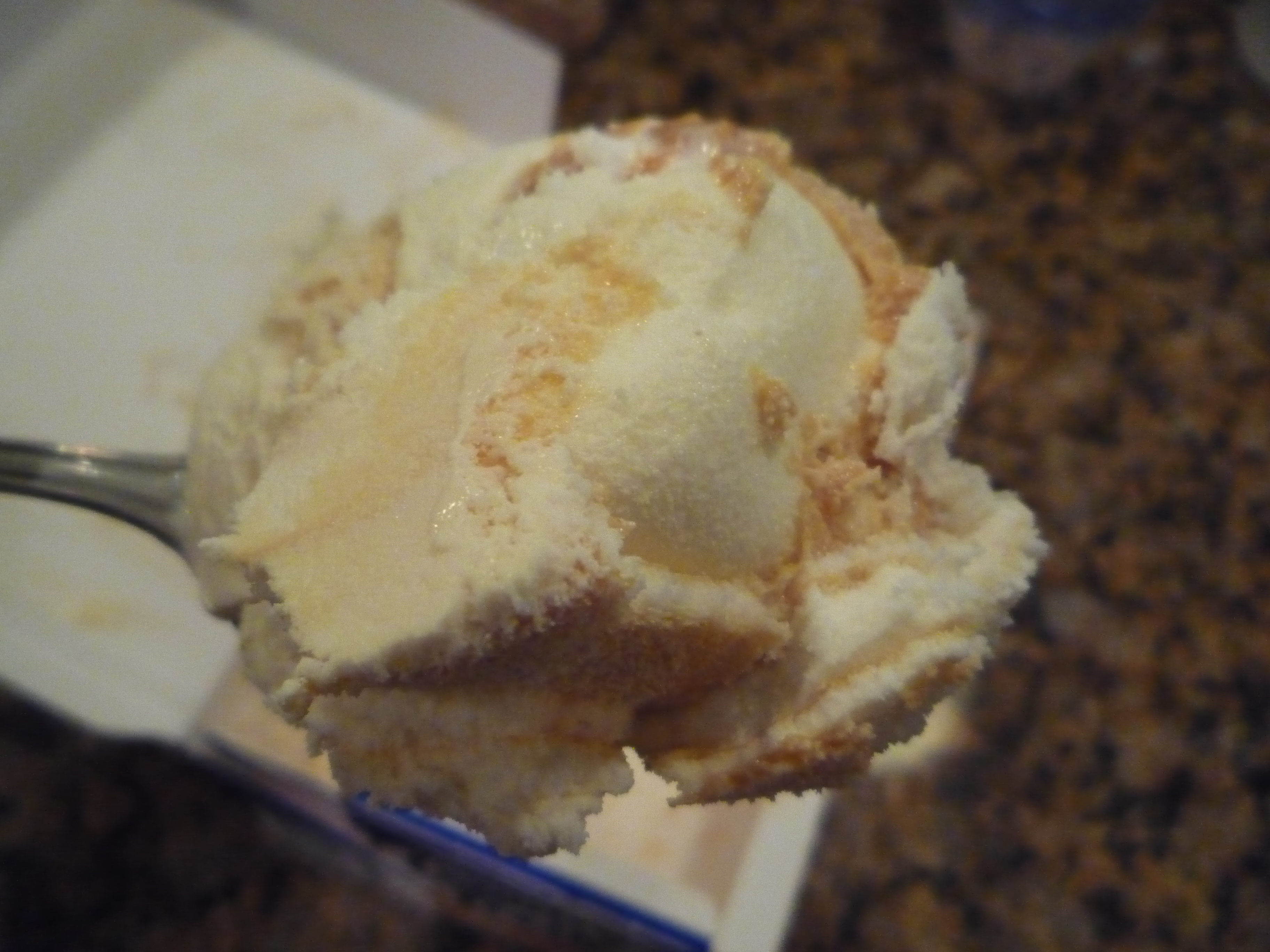 Dessert was a couple of spoonfuls of this horrible for you, absolutely delicious ice cream called Caramel Caribou: vanilla ice cream with caramel swirl and chocolate covered caramel cups. Say that five times fast. π