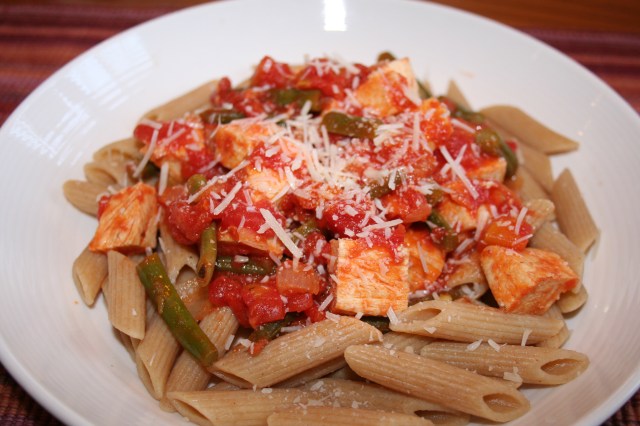 I have a recipe for you all! I made this a few months ago, and as I was looking through the pictures just now, I realized that I really do need to make it again! This dish could easily be vegetarian (even vegan!), but I added some cubed chicken to it, just for extra protein.