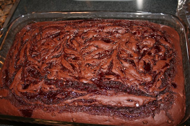 – A great variation on this recipe is to use chocolate cake batter instead of brownie. I made a raspberry swirl chocolate cake for Thanksgiving once, and it was a huge hit!