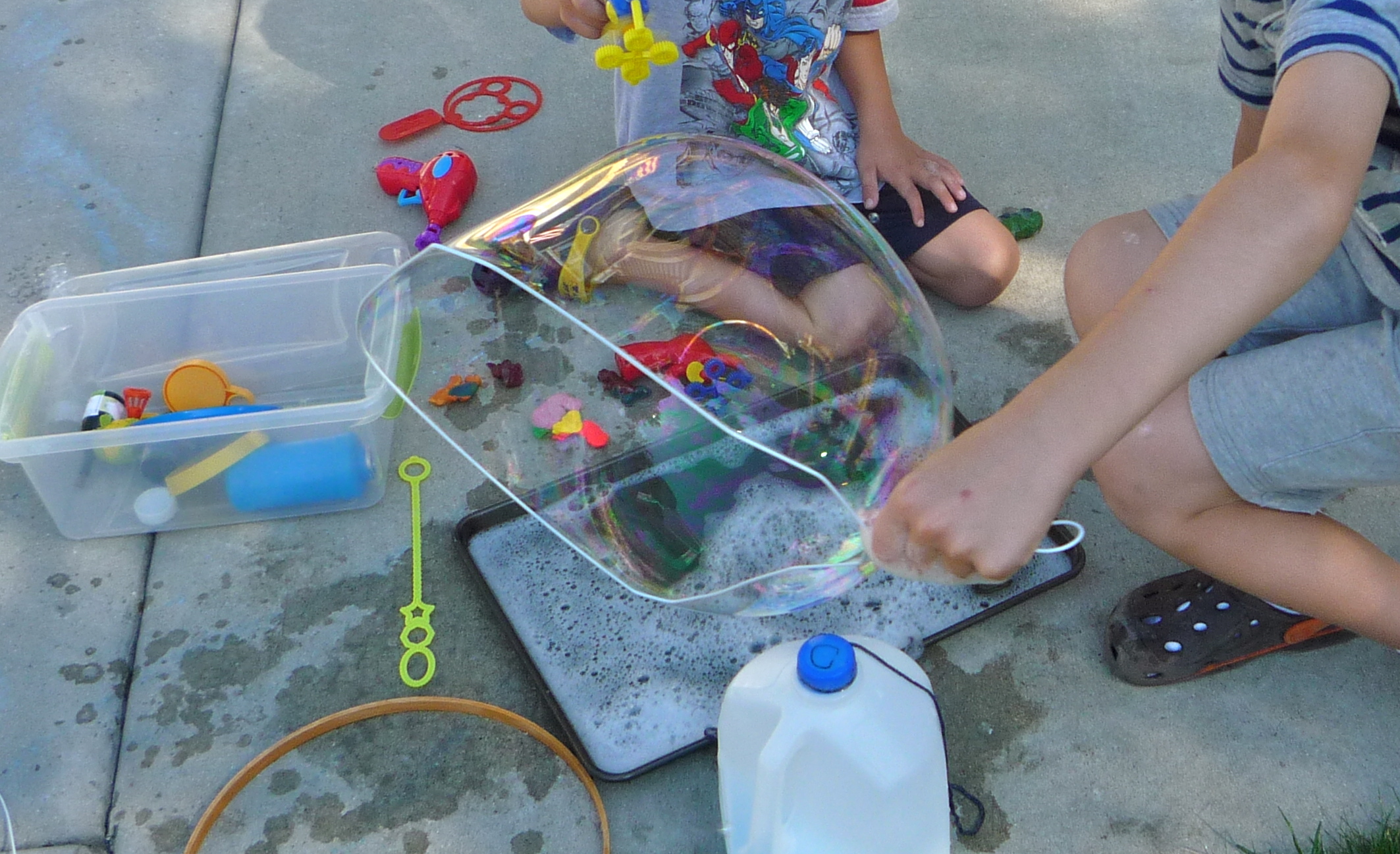 In other news, remember last week when I mentioned I was going to try and make giant bubbles as a final activity with the kids? And how I would post the “recipe” if it worked out? Well, they didn’t work so well. The bubbles were relatively small and quite disappointing: the ones that did grow giant popped within a matter of seconds. I think the kids still had fun, though, and that’s what’s important. π