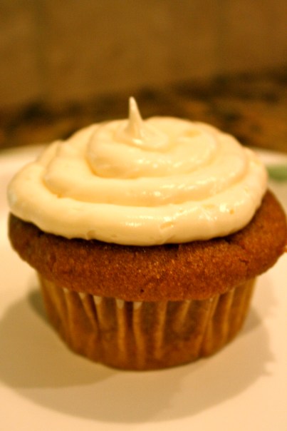 Of course, I already told you about those absolutely Amazing Chocolate Cupcakes (yes, I am going to brag there!), but I also made some vanilla cupcakes with vanilla frosting, and vegan pumpkin cupcakes. I’d never made pumpkin cake/cupcakes before, but they were a huge hit! Part of the reason we all got together was to celebrate the “fall” birthdays, and my aunt loves pumpkin cake, so I made it in her honor. They were so popular that I didn’t even get to try one!