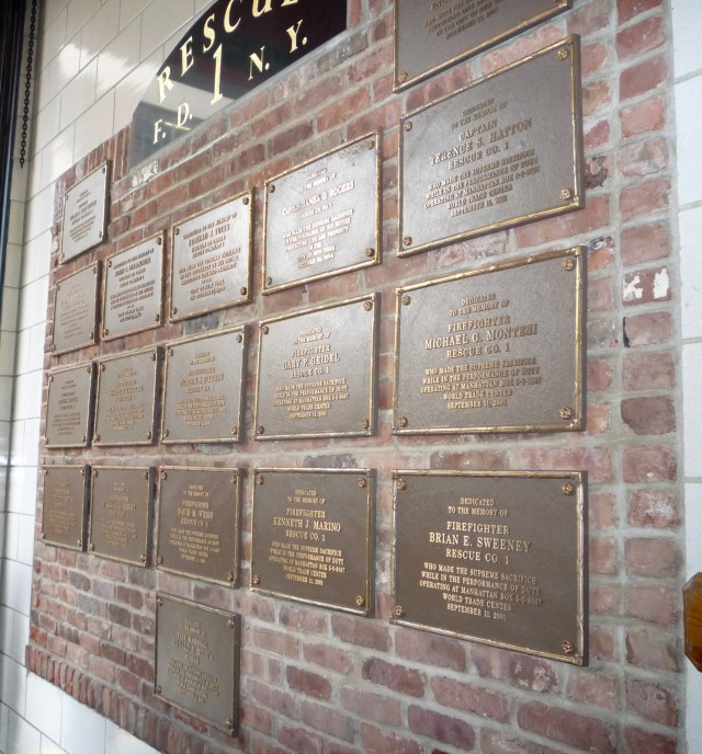 When I was in New York a few years ago, we visited Rescue Co. 1, one of the (many) fire departments that had helped on 9/11. The plaques are of people who lost their lives trying to help others.
