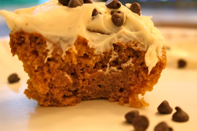 Before I found this recipe, I had never made pumpkin cake/cupcakes before. I’ve made bread and some 2-ingredient cookies using pumpkin (click here and here for the recipes), but nothing else beside that. For a long time I thought pumpkin-flavored things were overrated, but the delicious, moist, slightly spicy (not as in ouch-my-mouth-is-on-fire spicy, but like warmth spicy) quality it brings to these cupcakes definitely changed my mind.