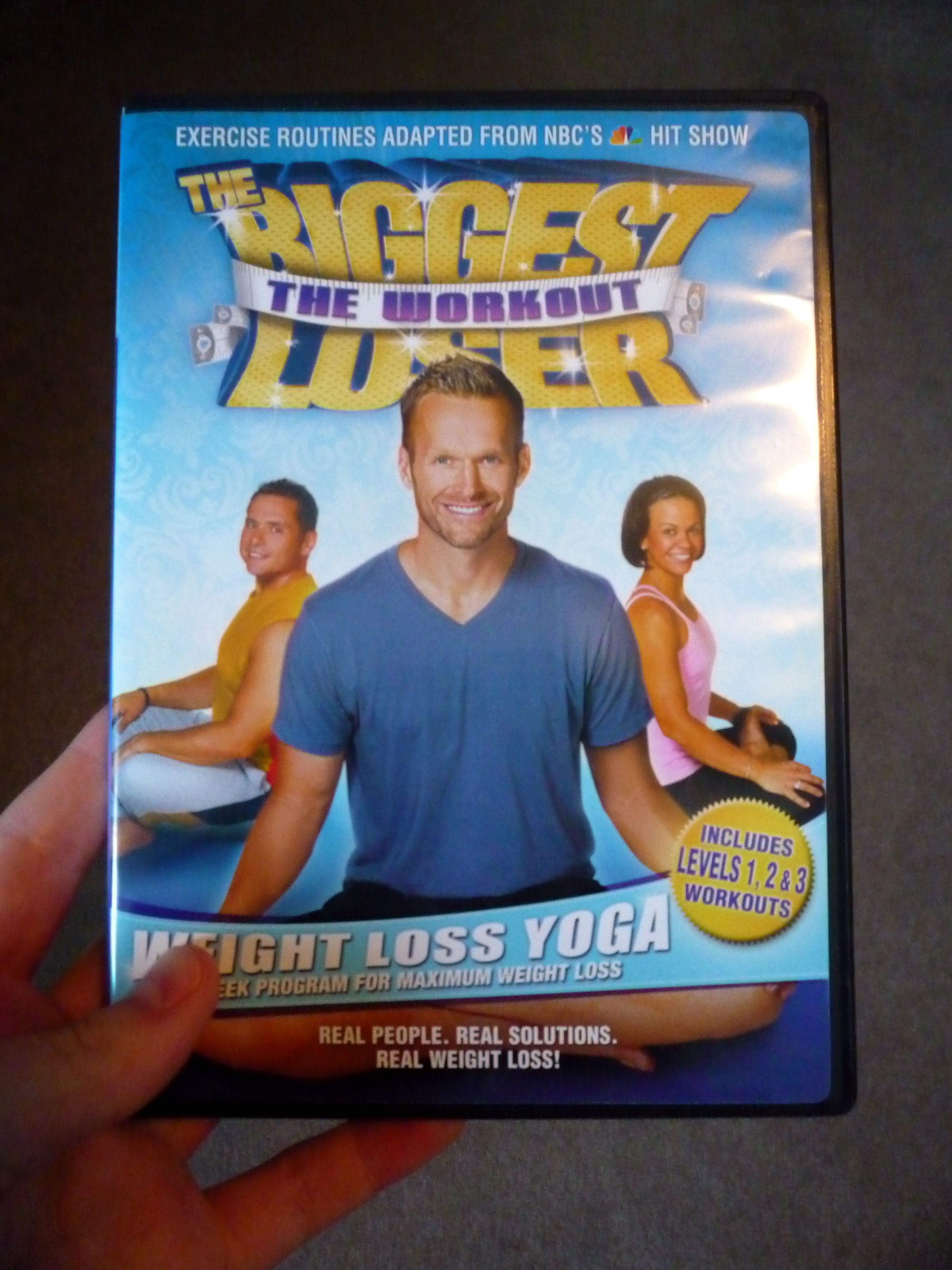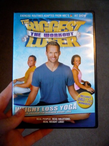 I unfortunately forgot my P90X DVD pack at home two weekends ago, and wasn’t able to do the 90 minute routine I love so much. I did, however, do Bob Harper’s Weight Loss Yoga DVD, which is broken up into 3 sections: vinyasa, which includes well-known yoga poses; yoga-pilates abs; and strength, which is where you use dumbbells to make your body work harder during the poses.