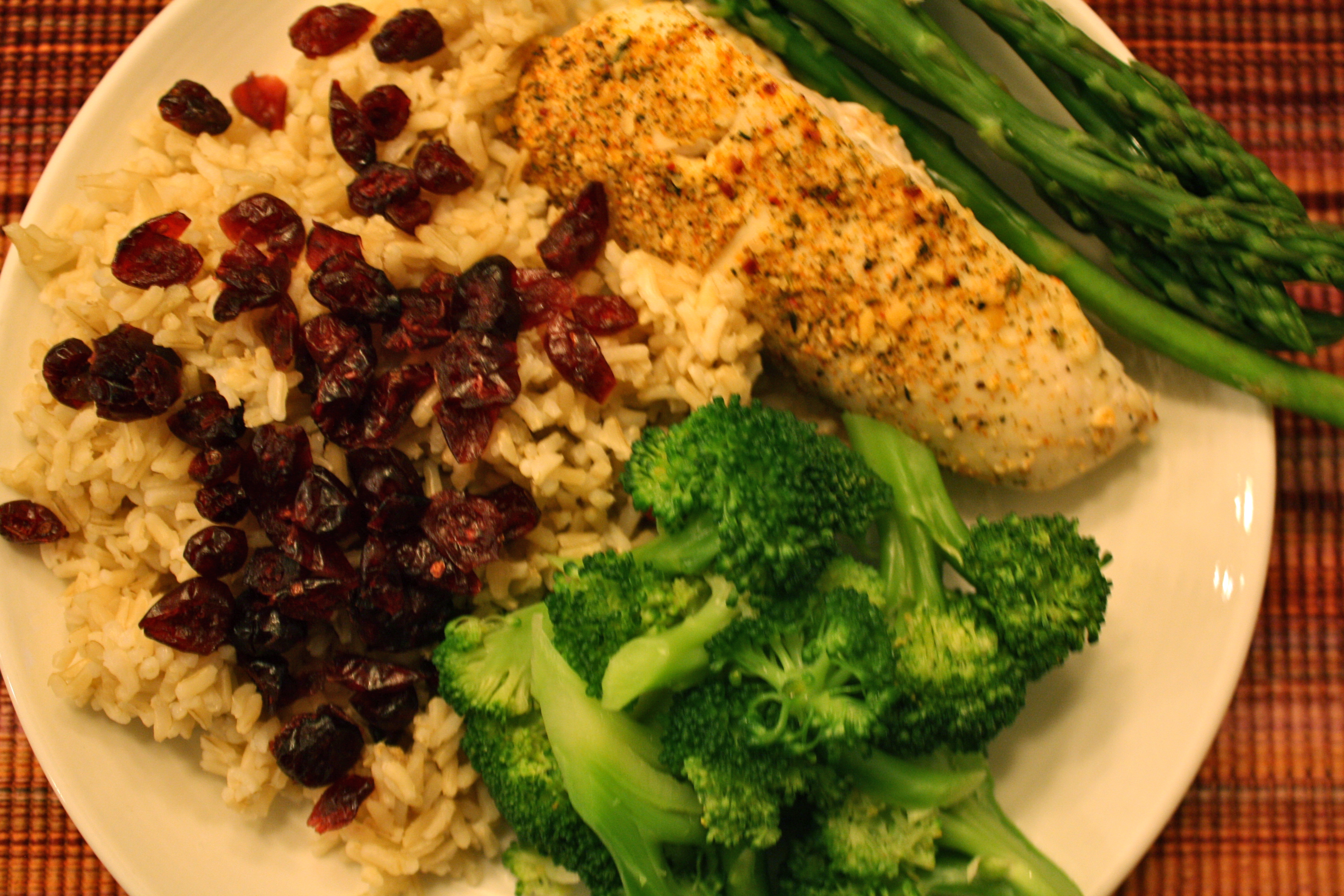 Some of my favorite dinners are the simple and healthy ones: chicken, broccoli and asparagus, and brown rice. Yum.
