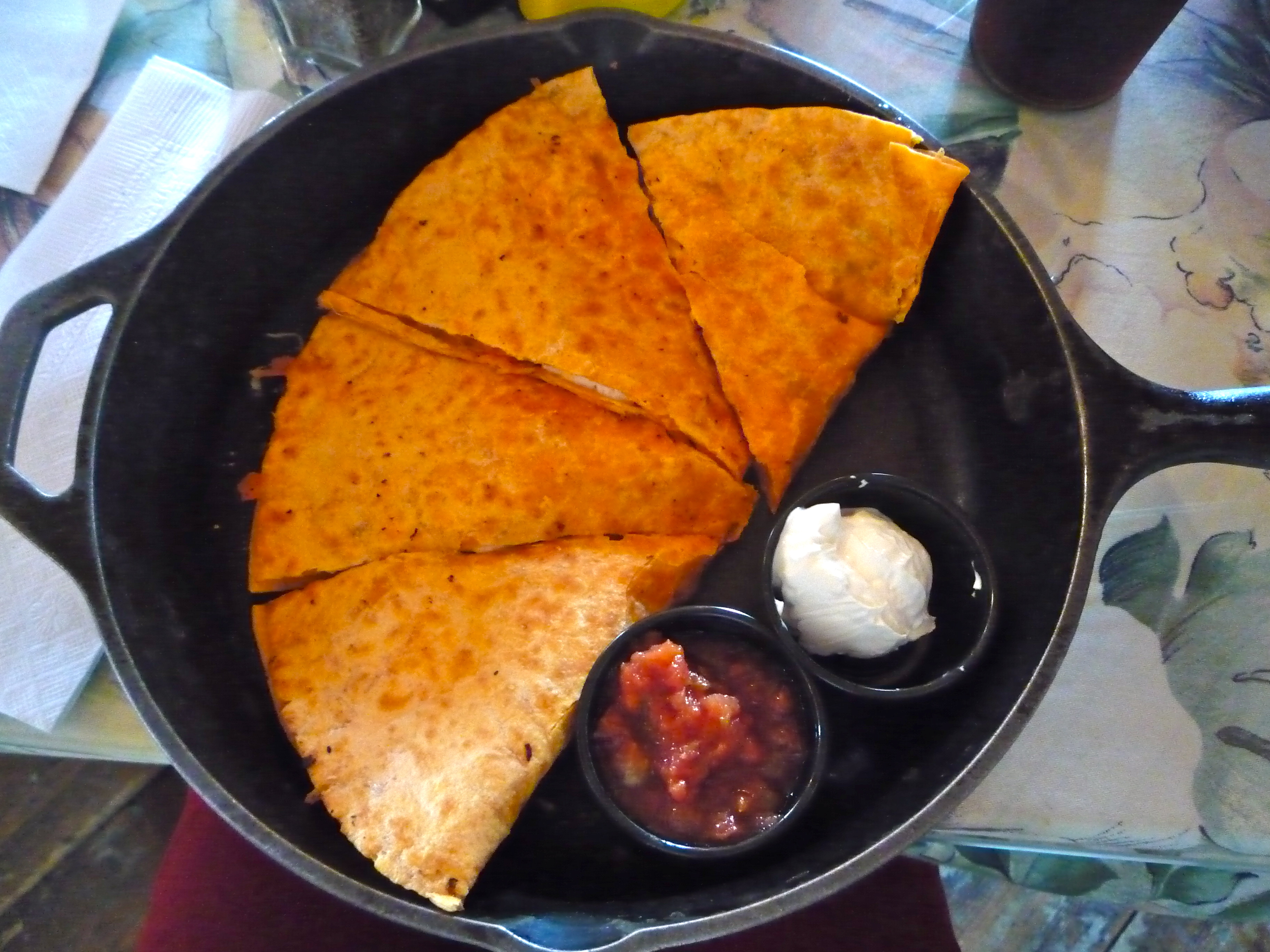 Every time I go to Pumpernickel’s, I order their chicken quesadilla. It’s nothing but chicken, cheese, and black beans on the inside, but boy is it good!
