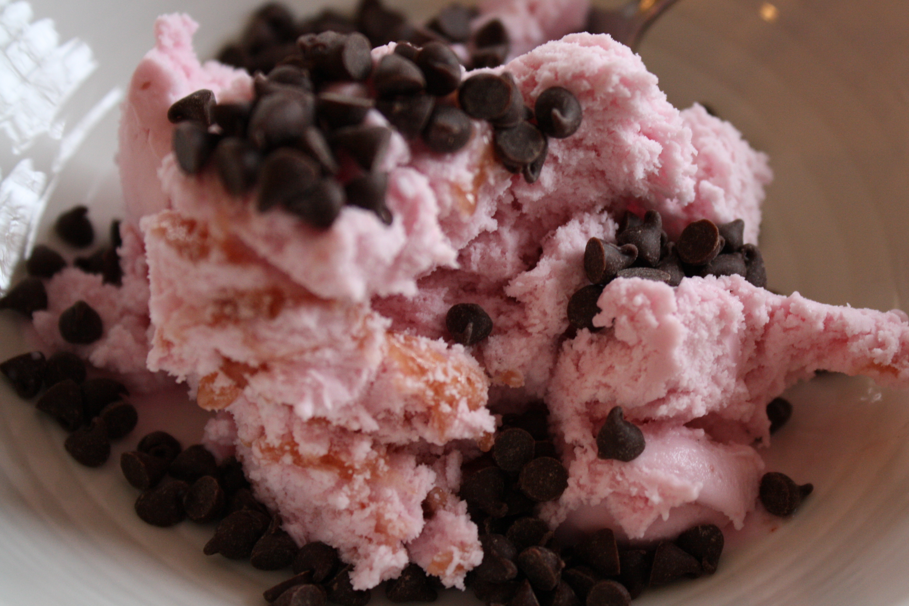 I obviously don’t stop eating ice cream when the weather gets cold! My grandma was over at our house for the week of Thanksgiving, and she bought some low fat strawberry ice cream, over which I sprinkled mini chocolate chips. I normally don’t like strawberry ice cream, but those chocolate chips did the trick!