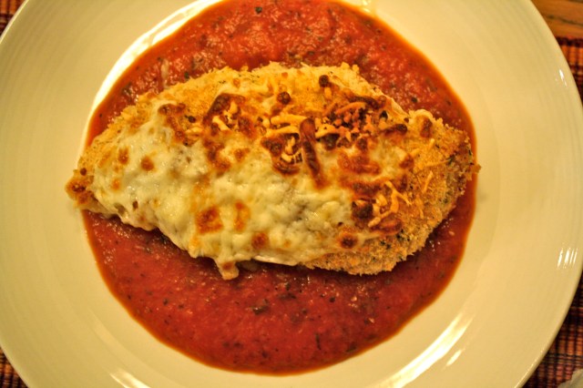 On Sunday night, I made some Skinny Chicken Parmesan (again; we can’t get enough of this meal!), only this time I didn’t put the marinara on the chicken.