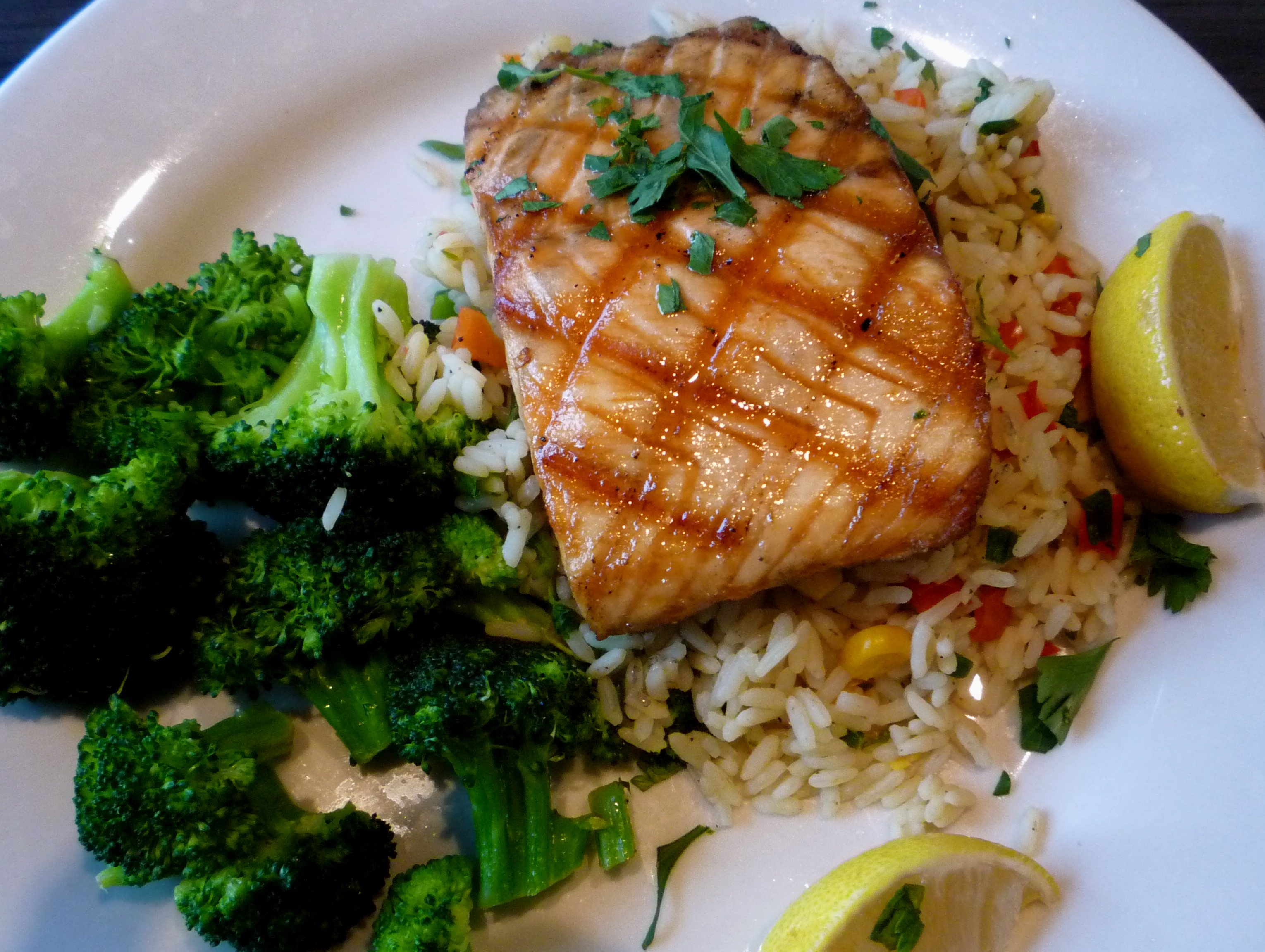 About two weeks ago Dan and I went to Benningan’s for dinner. I ordered this grilled salmon, which came with a rice pilaf and steamed broccoli. Yum yum yum.