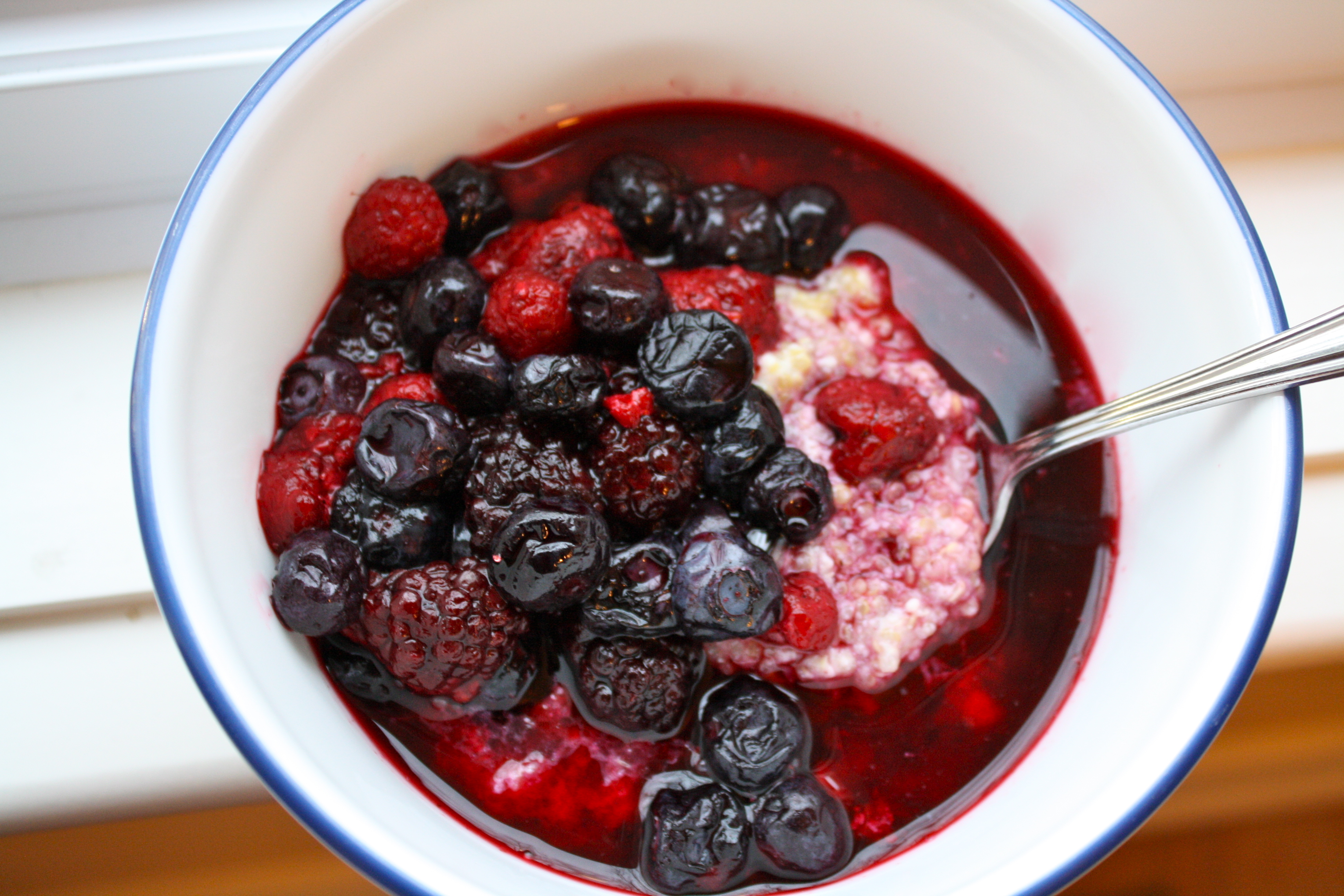 As you can see, I kind of swamped the quinoa with the berry juice, so it doesn’t look as pretty as the other times I’ve made it, but it sure does taste good!
