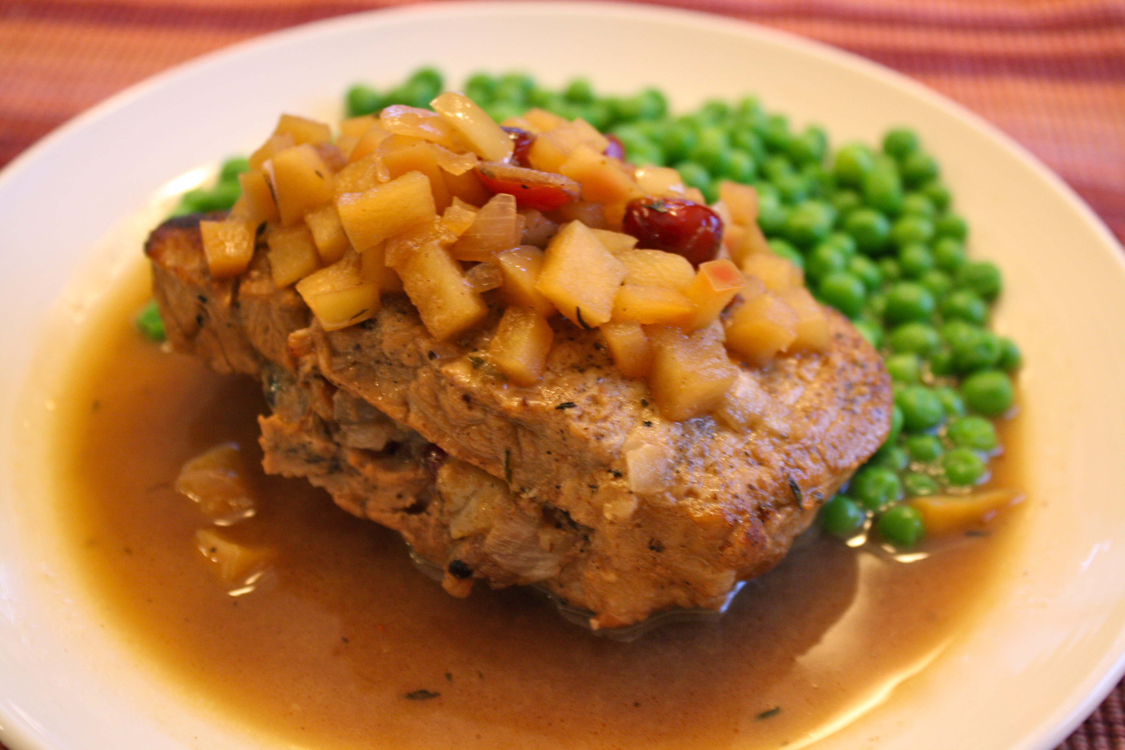 I’m going to call it: Savory Apple and Cranberry Stuffed Pork Chops.