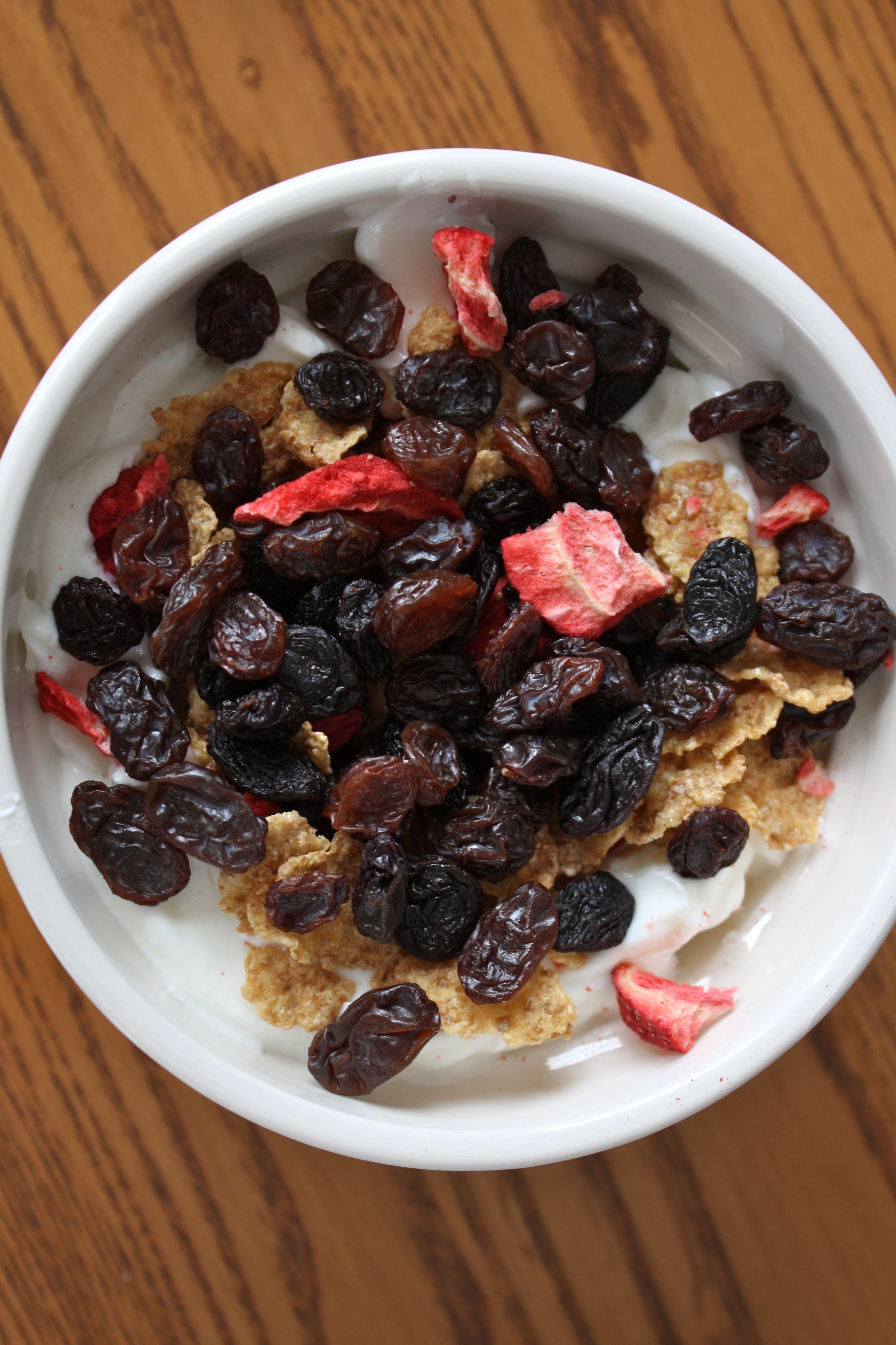 Greek yogurt, raisins, and Special K. Yum yum yum.