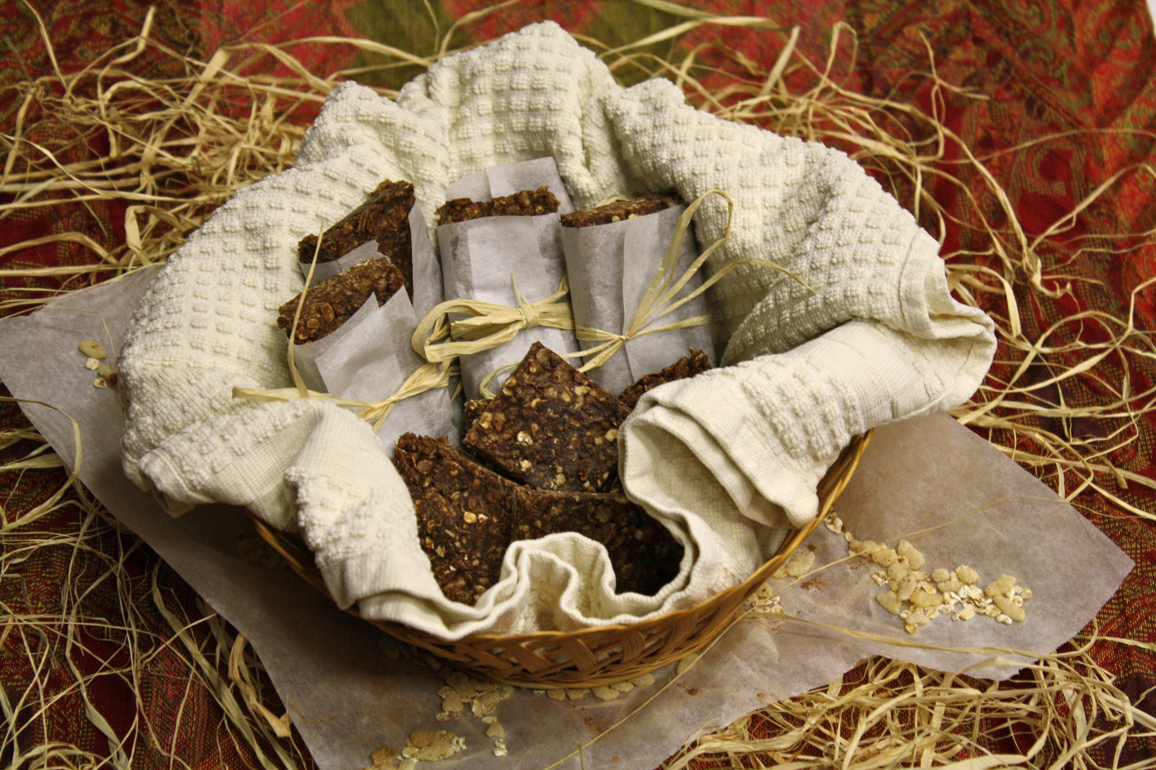 I had planned on wrapping my bars in parchment paper and setting them up in a basket for presentation. I was kind of going off the whole simple, natural aspect of my recipe.
