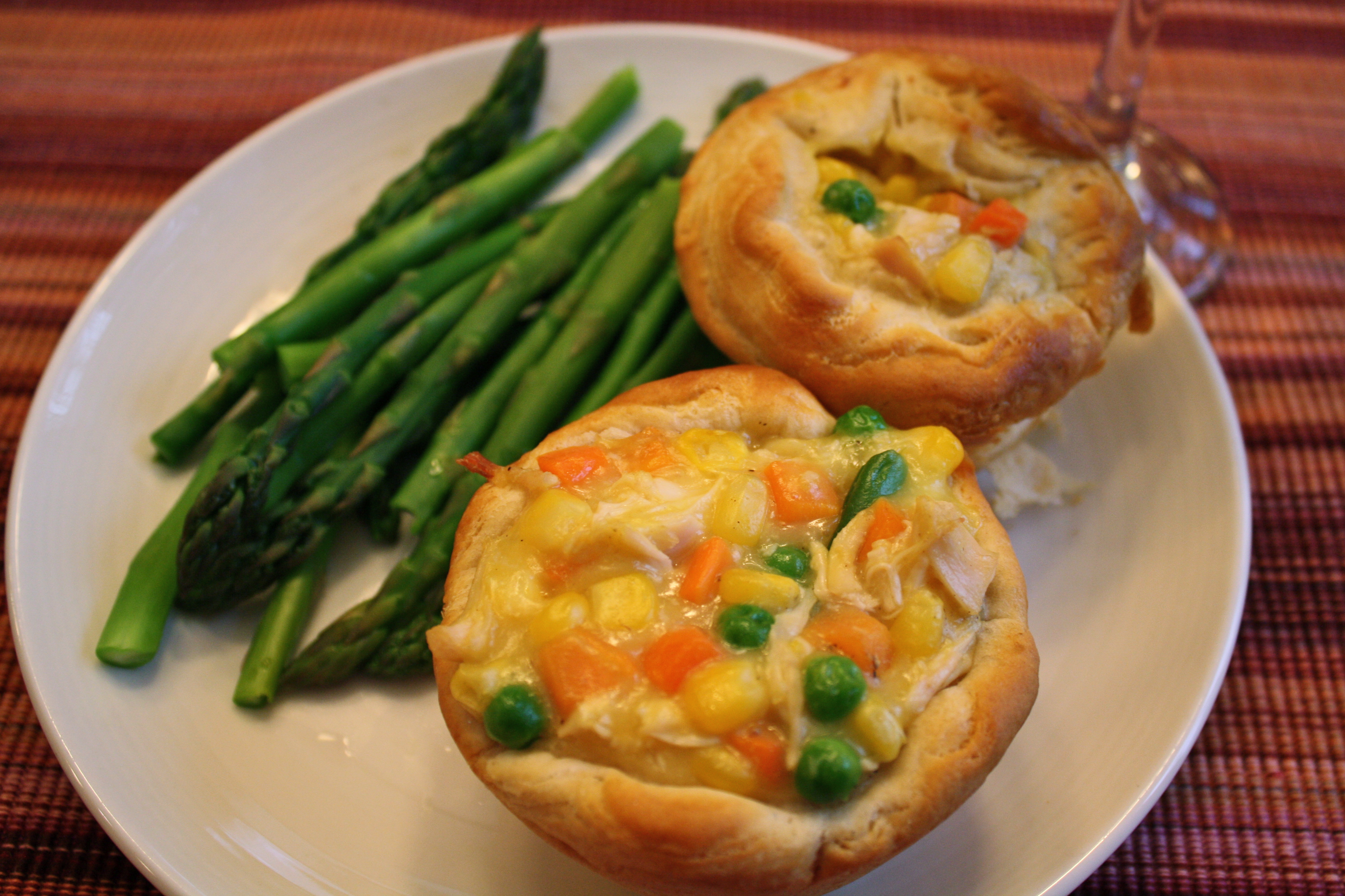 So, instead of going out to dinner like we had planned, she asked me to make these Mini Chicken Pot Pies. Yum!