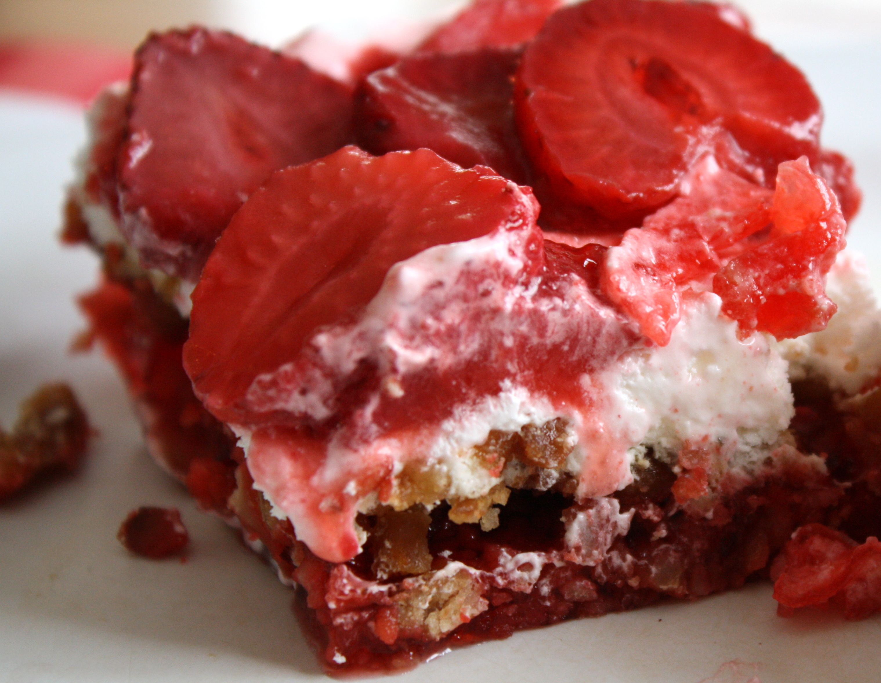 My mom requested this strawberry pretzel dessert by Paula Deen for her birthday.