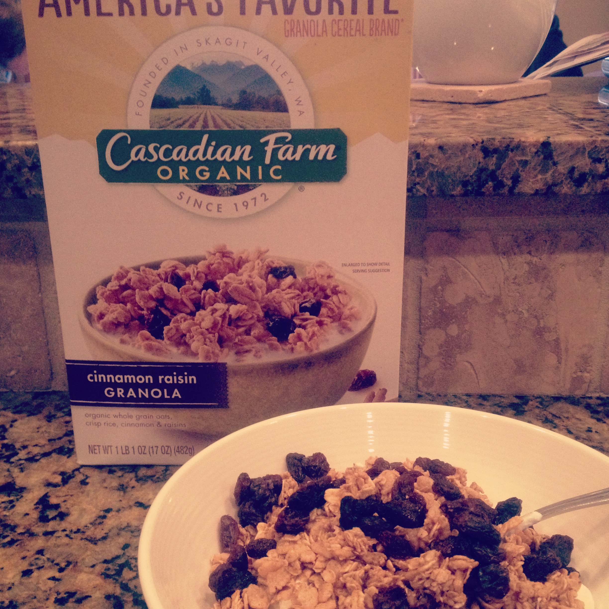 The usual, Greek yogurt, but with granola on top instead of cereal! Over the course of the week, I enjoyed my Greek yogurt bowls with homemade granola (so good) and some of this Cascadian Farms organic granola.