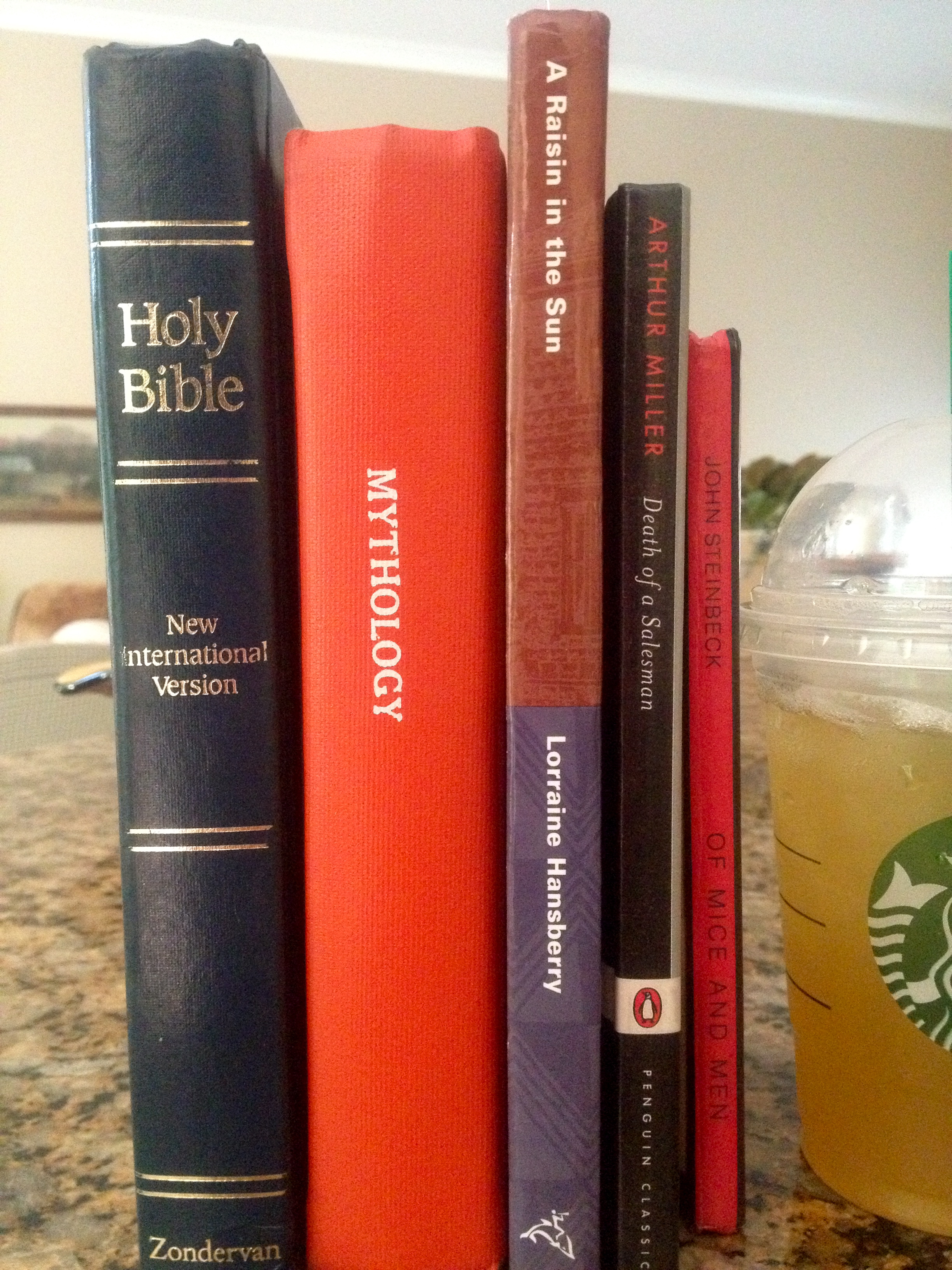 - I spent two mornings at the high school in which I’ll be student teaching. I talked more with my coordinating teachers about plans and classes for next year, and I’m getting more excited to start. Both of them are just so nice, and from the looks of it (I read syllabi and observed a few hours), I really like their teaching styles. They have yet to work out my schedule, but it looks like I’ll be teaching at least one Mythology course (an elective for seniors) and a few Honors American lit classes (for sophomores).