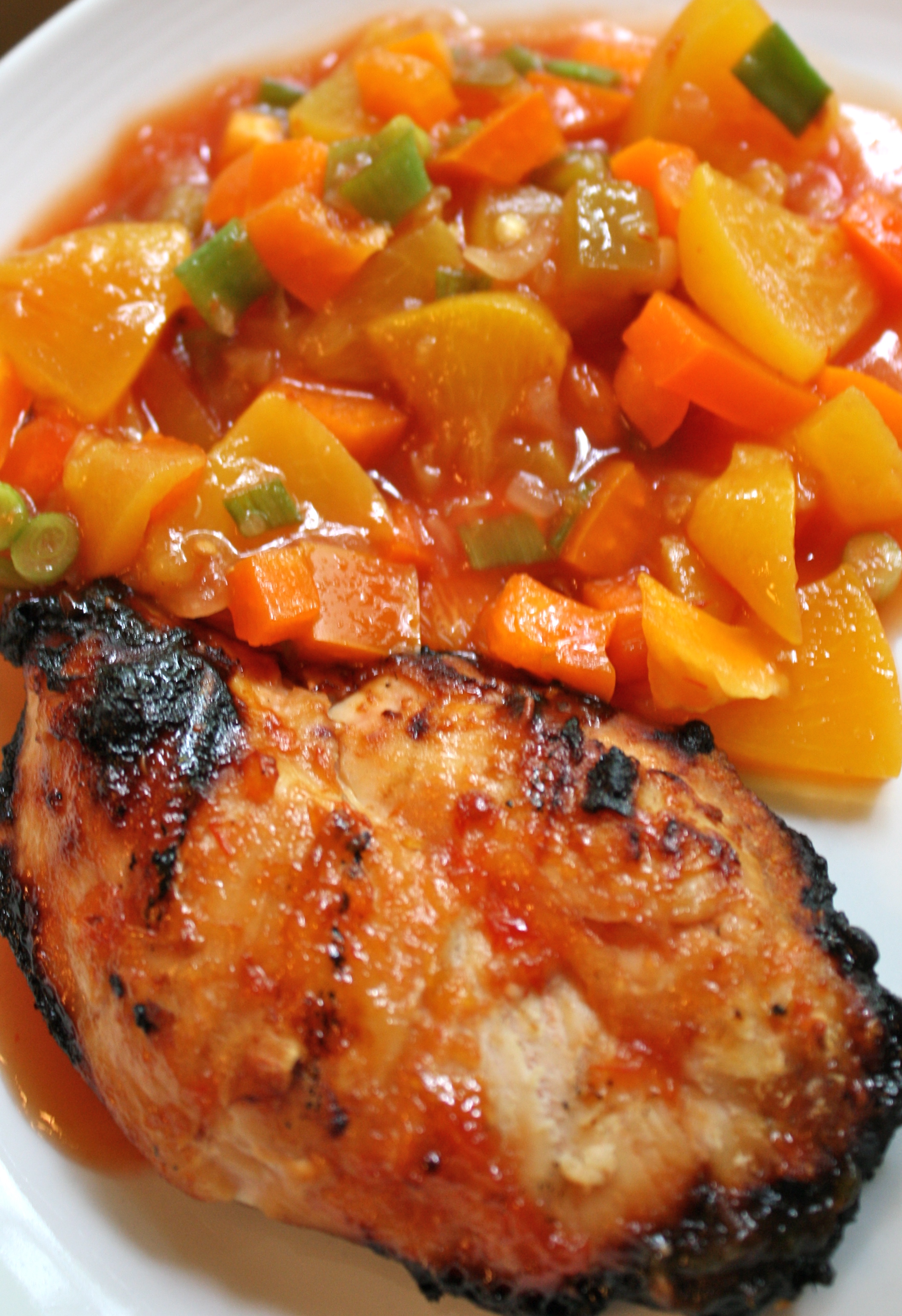 This next meal was actually what we had on the 4th; Picante Peach Chicken. It’s one of my favorite recipes by Campbell’s Kitchen, but, um…people shouldn’t let me near a grill. Seriously. You can’t tell from this picture (or maybe you can), but I burned the living daylights out of this chicken. It was embarrassing and not very good. Think hockey puck-texture. But no one complained, and I think we were all able to chip off the black parts and eat the rest. Annnnnyyyyway, the recipe is a great one!