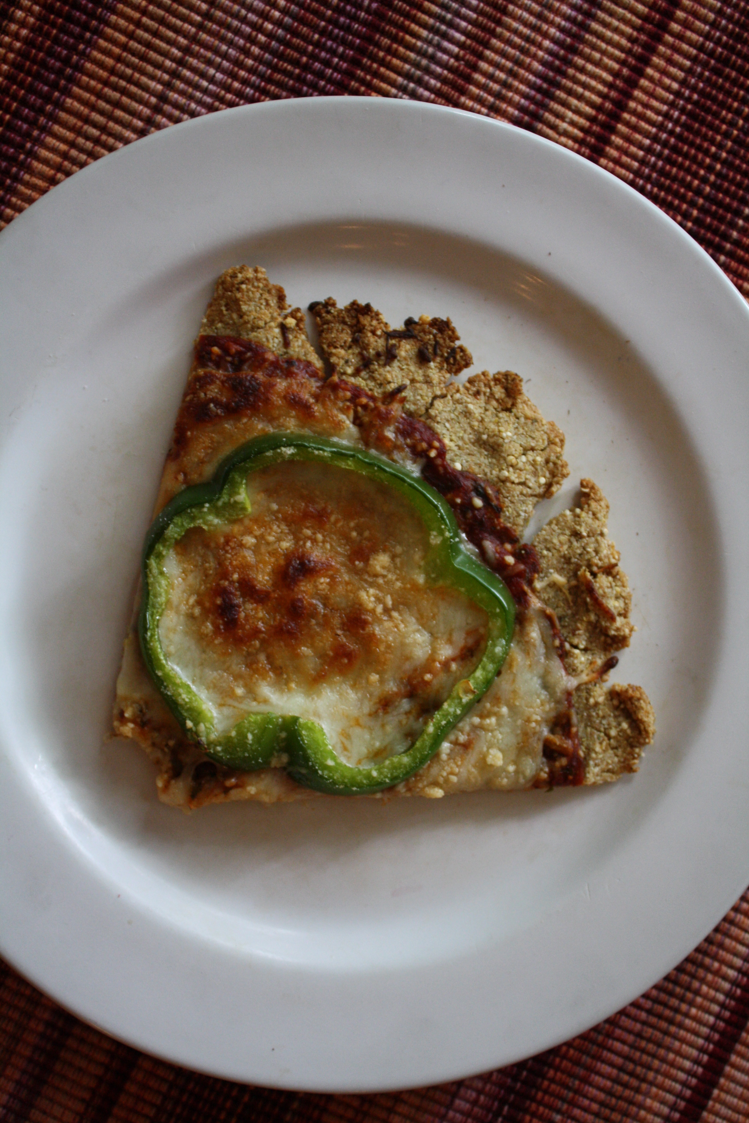 Very clever use of quinoa flour. Since I don’t have any allergies, I’m still a fan of my flour crusts although I really like the natural protein boost in this one. The sliced peppers look perfect on top too.