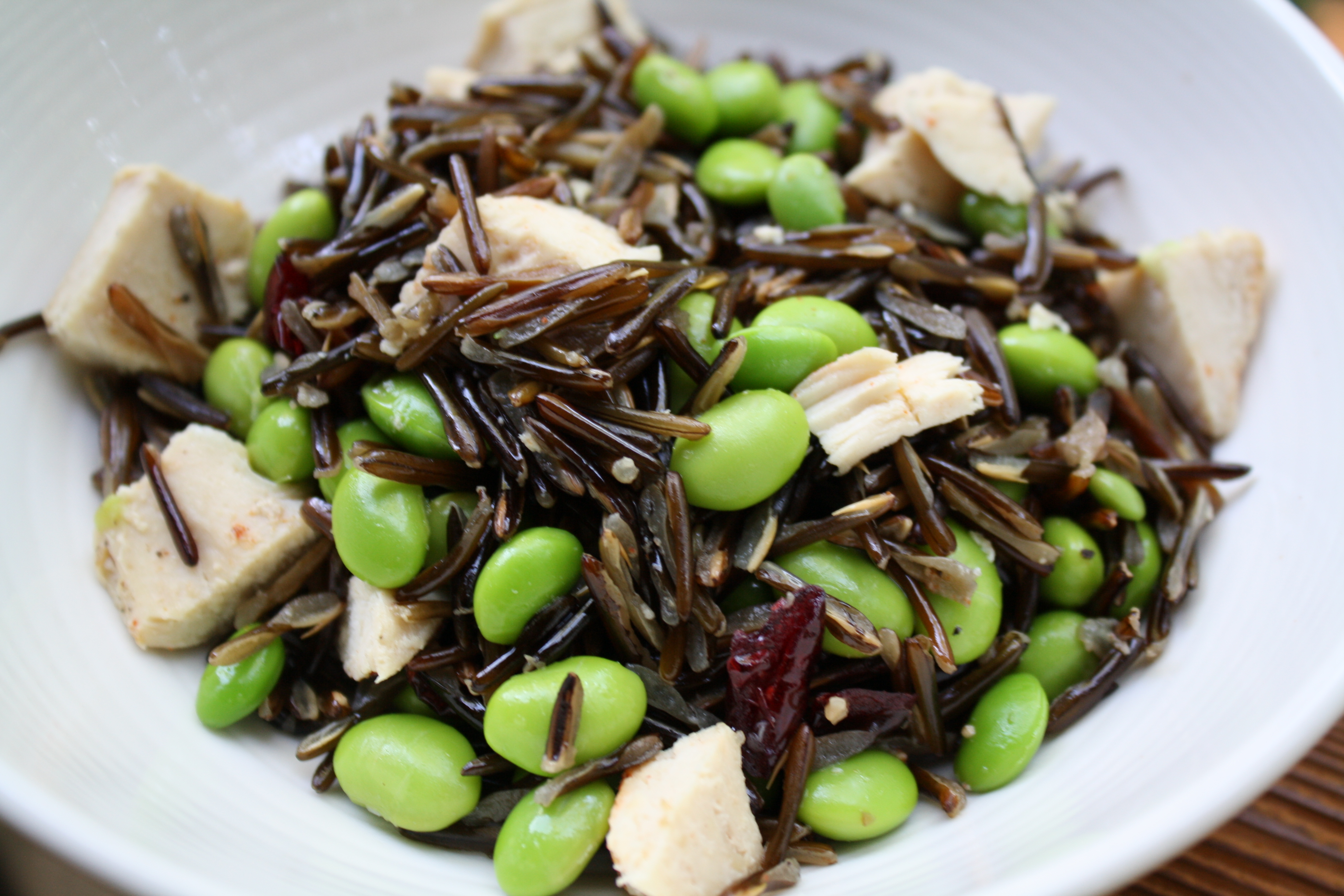 It was chicken, edamame, and Craisins mixed with wild rice. My dad bought a pound of this wild lake rice in the U.P. and I finally cooked it up. I wanted the dish to look really cool and taste good, which is where the seemingly random ingredients came from.
