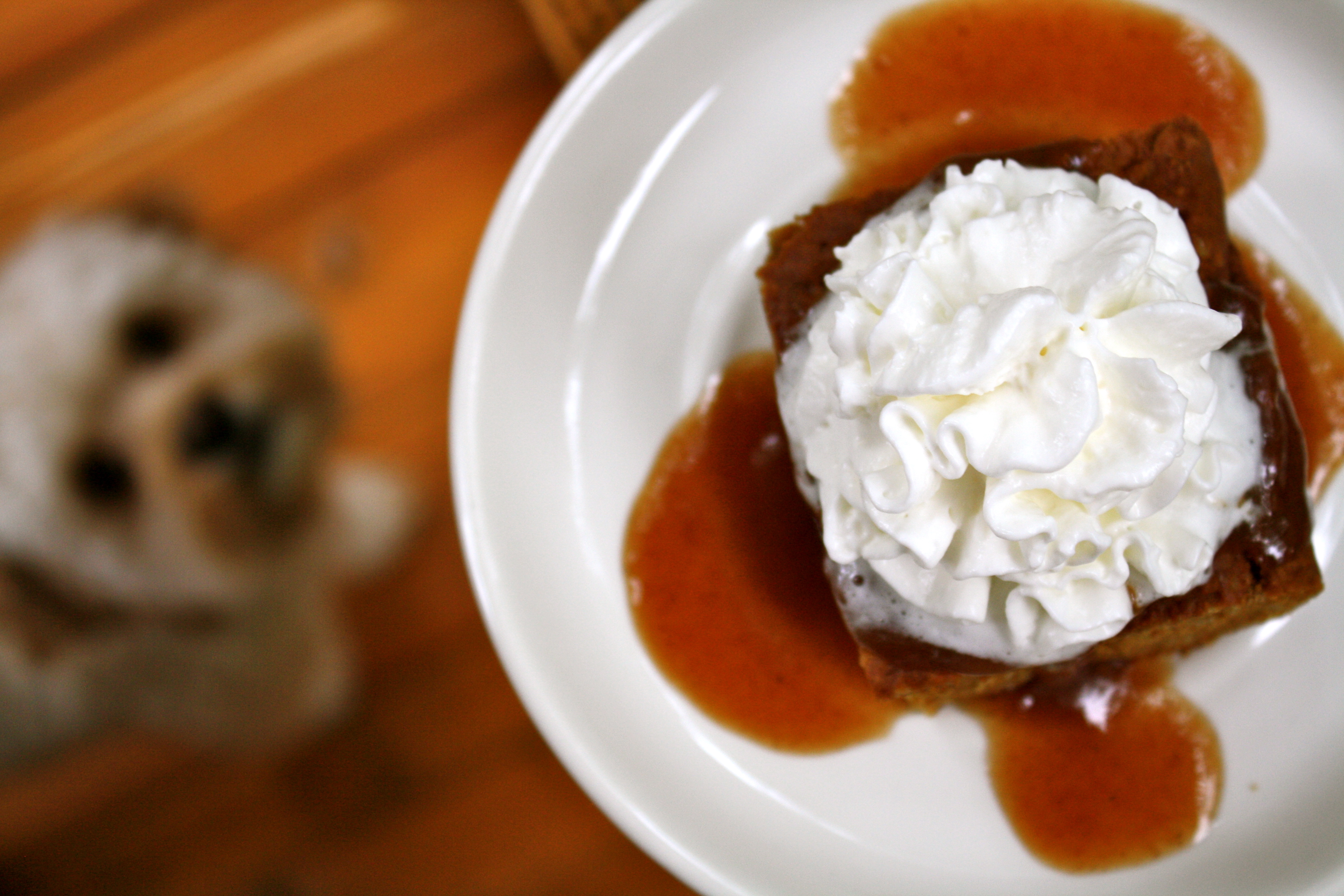I can, however, claim the genius behind topping it with THIS amaaaaaaaaazing cinnamon syrup. The only difference between the recipe and what I made was that I added a bit of dried ginger to this syrup to help it echo the flavors in the gingerbread. GOSH this was a winning combo. Especially if topped with whipped cream.